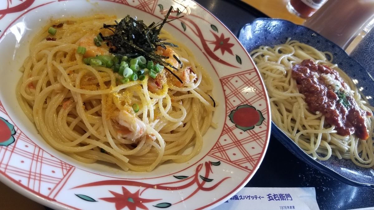 五右衛門パスタって、おぼんや箸でいただくジャパニーズスタイルがいいですよね