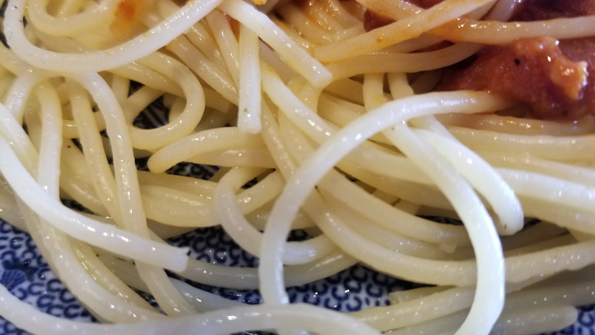 五右衛門さんのパスタは、どちらかといえば細麺ですね