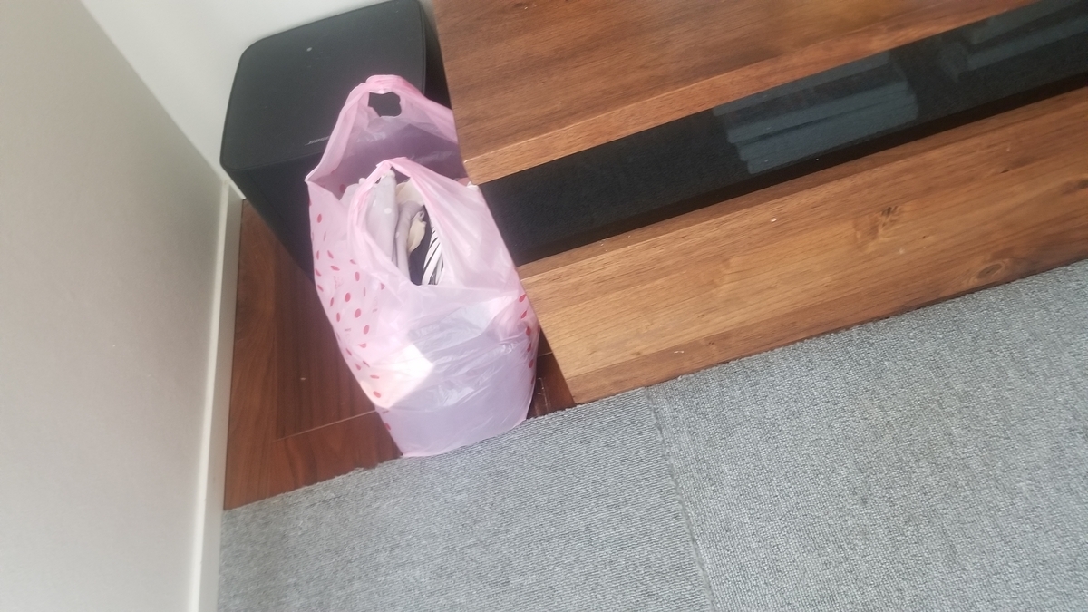 先日、GW中に両親が遊びに来てくれたのですが、知らぬ間に謎の袋がテレビの脇に置いてありました