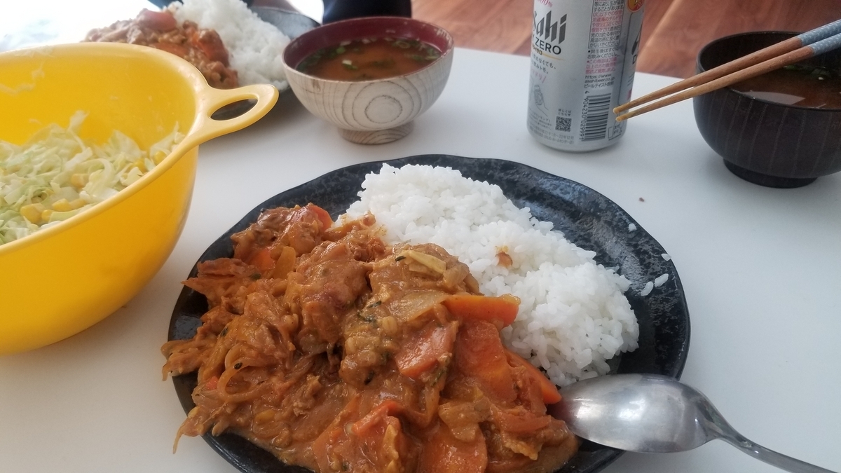 先日カレー粉から作った自家製カレーです
