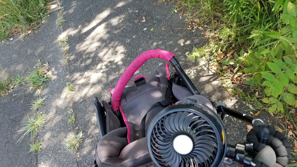 我が子が「ベビースターがいい!」というので、体重17キロほどの子供を乗せて、坂道も炎天下の朝も西日が当たる夕方も負けずに散歩をかねて行きました