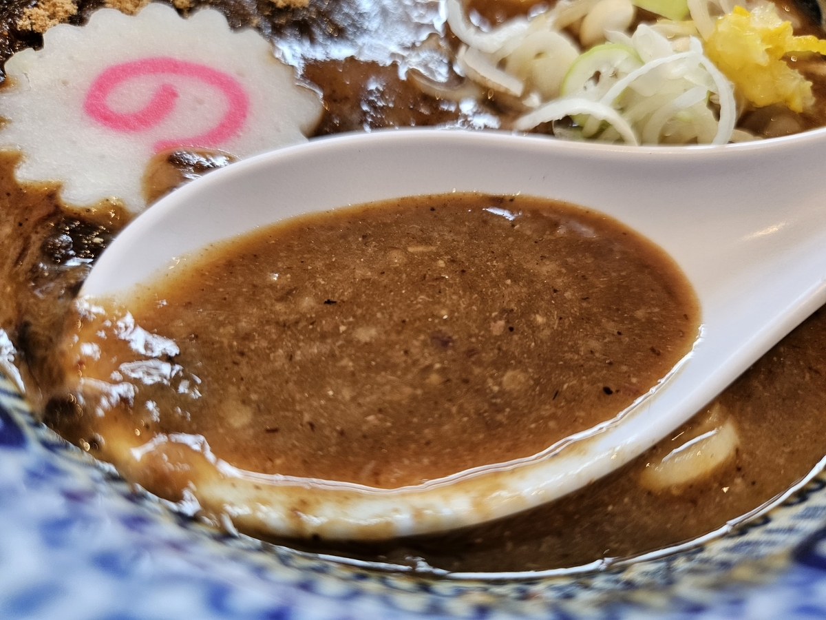 スープは濃い目で麺によく絡んで最後まで味の濃さを忘れさせません