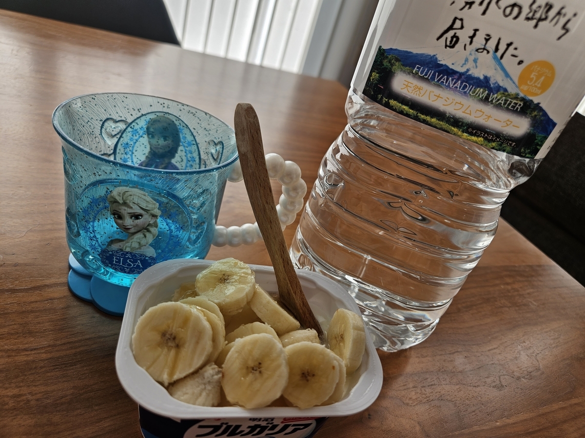 - 昼:ヨーグルトバナナ、梅干しお粥、夜:オムライス