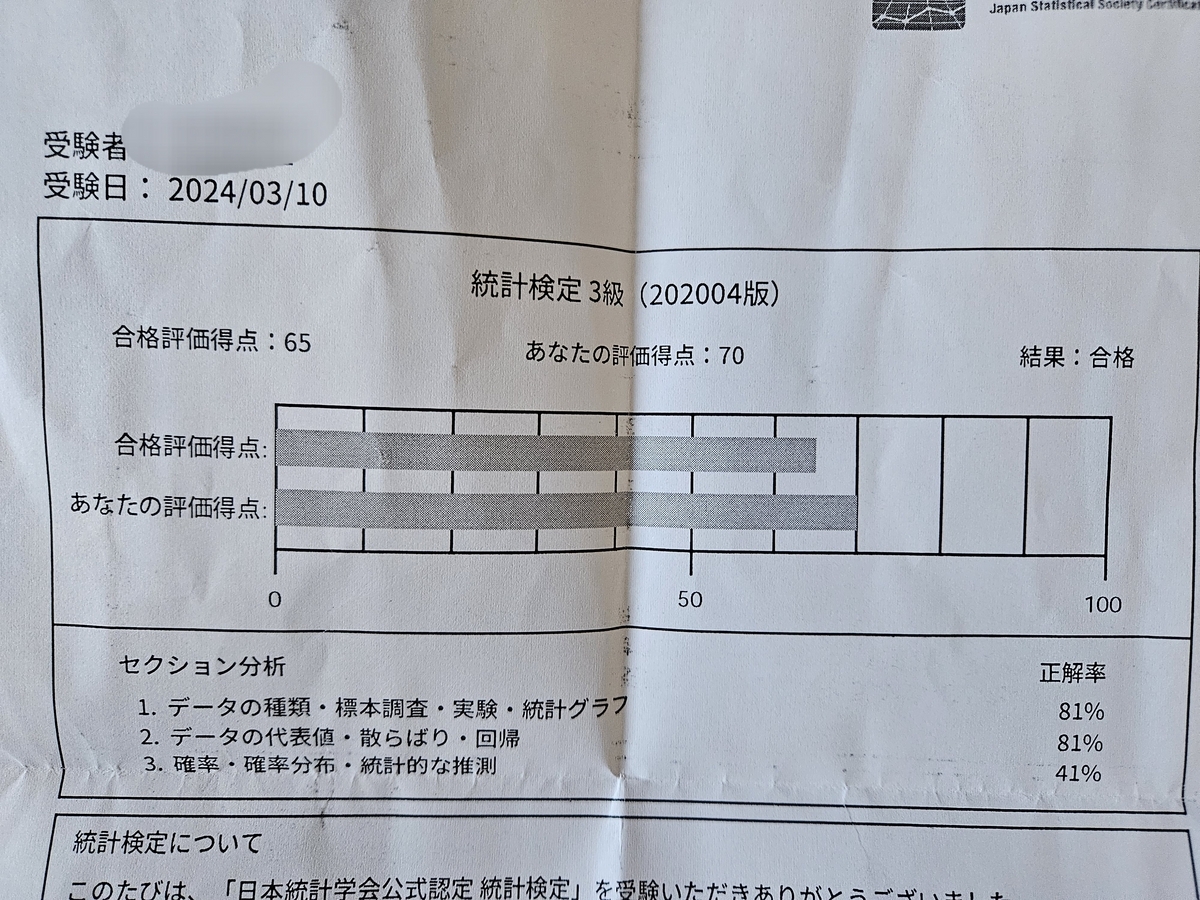 どこかで悲しくなっている統計検定3級受験者の方に元気を出してもらえれば幸いです 大丈夫です、私でも合格しました