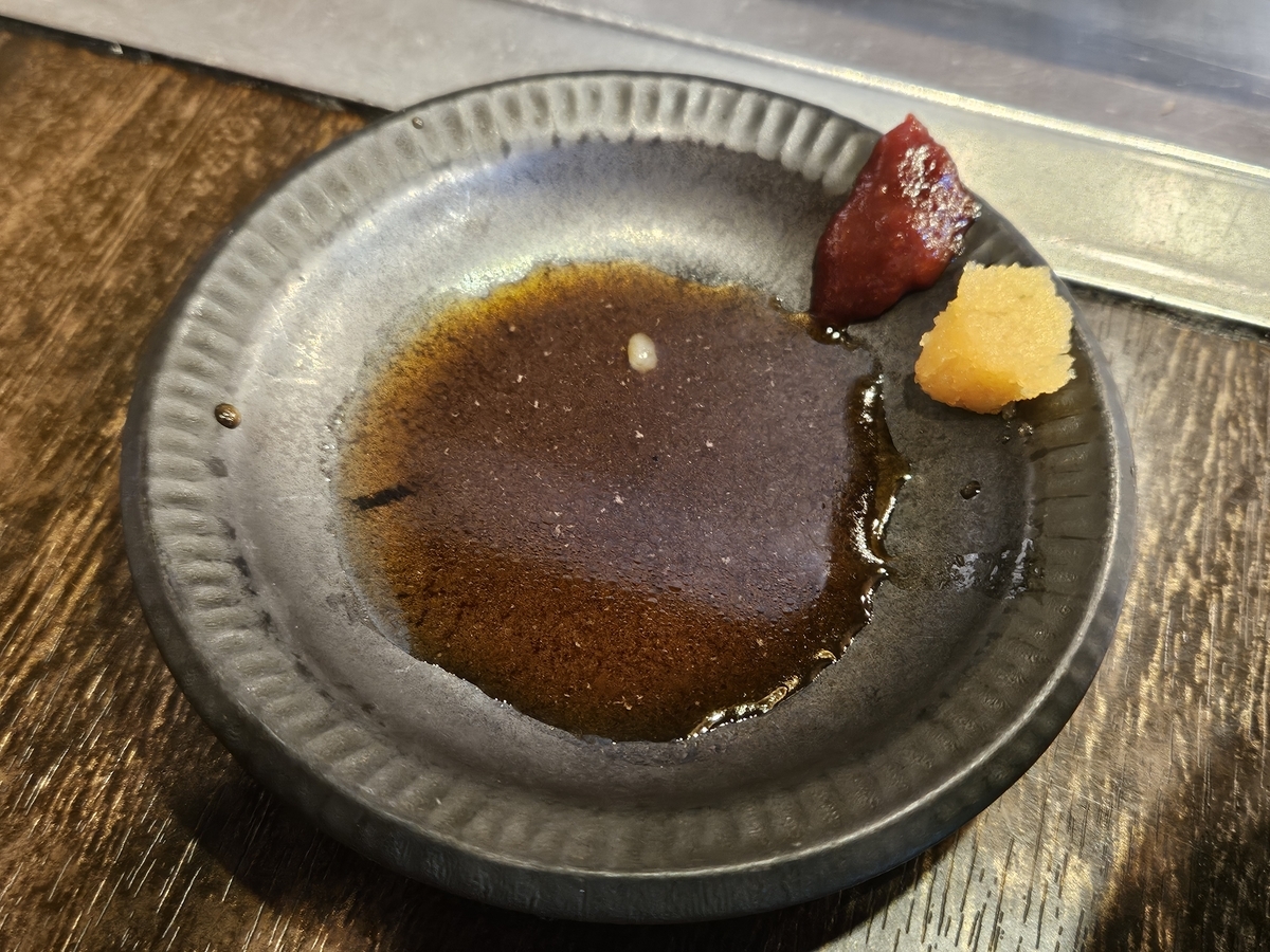 テーブルにはタレと辛味、にんにくがあるのでお好きなアレンジを楽しむことができます