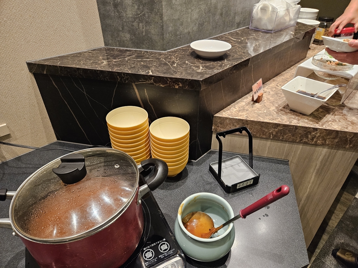 昨晩のディナーでキッズコーナーだったところには温泉たまごなどが並べられています
