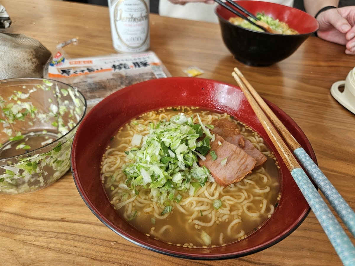 家にあるラーメンを贅沢に3つも!これでも2人で200円行かないランチです